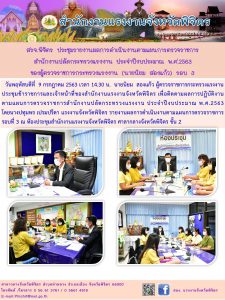 สรจ.พิจิตร ประชุมรายงานผลการดำเนินงานตามแผนการตรวจราชการ สำนักงานปลัดกระทรวงแรงงาน ประจำปีงบประมาณ พ.ศ.2563 ของผู้ตรวจราชการกระทรวงแรงงาน (นายนิยม สองแก้ว) รอบ 3