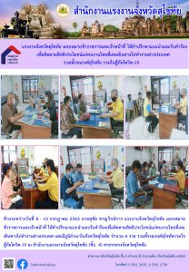 แรงงานจังหวัดสุโขทัย มอบหมายข้าราชการและเจ้าหน้าที่ ให้คำปรึกษาแนะนำและรับคำร้องเพื่อติดตามสิทธิประโยชน์แก่คนงานไทยที่เคยเดินทางไปทำงานต่างประเทศ รวมทั้งรณรงค์สุโขทัย รวมใจสู้ภัยโควิด-19