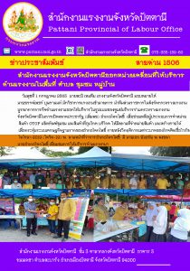 สำนักงานแรงงานจังหวัดปัตตานี ลงพื้นที่ตรวจติดตามการดำเนินงานและจ่ายค่าจ้างโครงการแก้ไขปัญหาความเดือดร้อนด้านอาชีพ จังหวัดปัตตานี