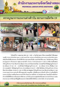 สำนักงานแรงงานจังหวัดอ่างทอง ตรวจบูรณาการด้านแรงงาน แรงงานต่างด้าว ในสถานการณ์โควิด-19