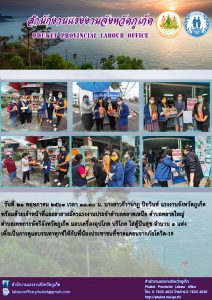 แรงงานจังหวัดภูเก็ต พร้อมด้วยเจ้าหน้าที่และอาสาสมัครแรงงานประจำตำบลตลาดเหนือ ตำบลตลาดใหญ่ ตำบลเทพกระษัตรีจังหวัดภูเก็ต มอบเครื่องอุปโภค บริโภค ใส่ตู้ปันสุข