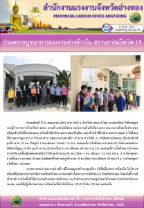 สำนักงานแรงงานอ่างทอง ร่วมตรวจบูรณาการแรงงานต่างด้าวในสถานการณ์ โควิด-19