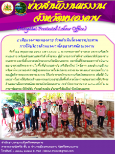 5 เสือแรงงานหนองคาย ร่วมดำเนินโครงการประสานการให้บริการด้านแรงงานโดยอาสาสมัครแรงงาน