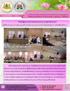 นายสุวรรณ์ ดวงตา หัวหน้าผู้ตรวจราชการกระทรวงแรงงานเพื่อตรวจติดตามและเน้นย้ำการดำเนินการตามมาตรการเร่งด่วนในการป้องกันวิกฤติการณ์ จากโรคติดเชื้อไวรัสโควิด-19 ของหน่วยงานในสังกัดกระทรวงแรงงานจังหวัดปทุมธานี