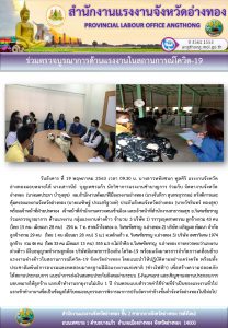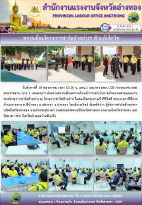 สำนักงานแรงงานจังหวัดอ่างทอง ร่วมตรวจบูรณาการด้านแรงงานในสถานการณ์โควิด-19