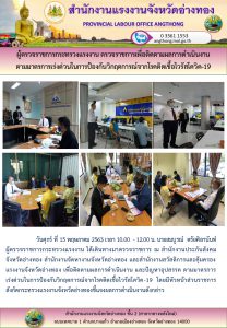 ผู้ตรวจราชการกระทรวงแรงงาน ตรวจติดตามมาตรการเร่งด่วนในการป้องกันวิกฤตการณ์ จากโรคติดเชื้อไวรัส Covid-19 และรับฟังปัญหาอุปสรรคในการปฏิบัติงาน บันทึกและอนุมัติสั่งจ่ายสิทธิประโยชน์กรณีว่างงานจากเหตุสุดวิสัย