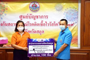 แรงงานจังหวัดสตูล ให้การสนับสนุนมาตรการของจังหวัดด้านการป้องกันการแพร่ระบาดของโรคโควิด-19 โดยมอบหน้ากากอนามัยแบบผ้า จำนวน 100 ชิ้น ให้แก่จังหวัดสตูล