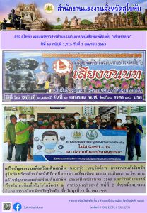 สรจ.สุโขทัย เผยแพร่ข่าวสารด้านแรงงานผ่านหนังสือพิมพ์ท้องถิ่น “เสียงชนบท” ปีที่ 63 ฉบับที่ 1,415 วันที่ 1 เมษายน 2563