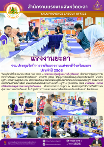 แรงงานยะลา ร่วมประชุมจัดกิจกรรมวันแรงงานแห่งชาติจังหวัดยะลา ประจำปี 2568