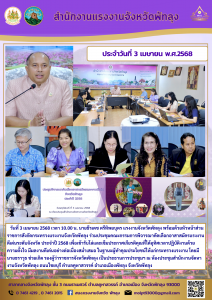 สำนักงานแรงงานจังหวัดพัทลุง ร่วมประชุมคณะกรรมการพิจารณาคัดเลือกอาสาสมัครแรงงาน ดีเด่นระดับจังหวัด ประจำปี 2568