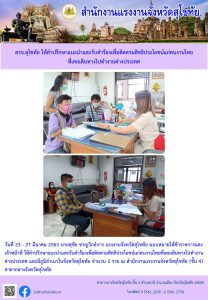 สรจ.สุโขทัย ให้คำปรึกษาแนะนำและรับคำร้องเพื่อติดตามสิทธิประโยชน์แก่คนงานไทยที่เคยเดินทางไปทำงานต่างประเทศ