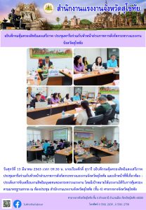 แรงงานจังหวัดบุรีรัมย์ เข้าร่วมประชุมติดตามและขับเคลื่อนโครงการอันเนื่องมาจากพระราชดำริพื้นที่ภาคตะวันออกเฉียงเหนือ