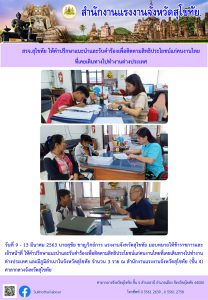 สรจ.สุโขทัย ให้คำปรึกษาแนะนำและรับคำร้องเพื่อติดตามสิทธิประโยชน์แก่คนงานไทยที่เคยเดินทางไปทำงานต่างประเทศ