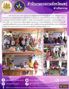 สำนักงานแรงงานจังหวัดแพร่ บูรณาการร่วมกับสำนักงานประกันสังคมจังหวัดแพร่ ลงพื้นที่เปิดโครงการแก้ไขปัญหาความเดือดร้อนด้านอาชีพ จังหวัดแพร่ ครั้งที่ 1 ประจำปีงบประมาณ พ.ศ. 2563 กิจกรรมพัฒนาทักษะฝีมือ “การทำไม้กวาดดอกหญ้าและไม้กวาดทางมะพร้าว”
