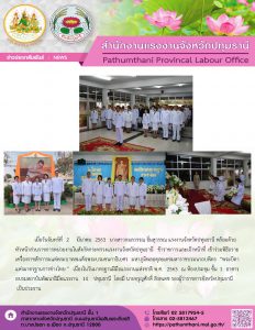 แรงงานจังหวัดปทุมธานี พร้อมด้วย หัวหน้าส่วนราชการหน่วยงานในสังกัดกระทรวงแรงงานจังหวัดปทุมธานี ข้าราชการและเจ้าหน้าที่ เข้าร่วมพิธีถวายเครื่องราชสักการะแด่พระบาทสมเด็จพระบรมชนกาธิเบศร มหาภูมิพลอดุลยเดชมหาราชบรมนาถบพิตร “พระบิดาแห่งมาตรฐานการช่างไทย”