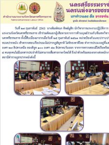 สำนักงานแรงงานจังหวัดนครศรีธรรมราช ร่วมคัดแยกผู้เสียหายจากการค้ามนุษย์ร่วมกับทีมสหวิชาชีพจังหวัดนครศรีธรรมราช