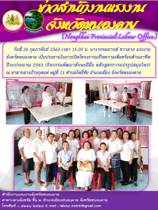 แรงงานจังหวัดหนองคาย เป็นประธานในการเปิดโครงการแก้ไขความเดือดร้อนด้านอาชีพ ปีงบประมาณ 2563 (กิจกรรมพัฒนาทักษะฝีมือ หลักสูตรการแปรรูปสมุนไพร)