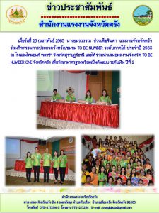 แรงงานจังหวัดสตูล เข้าร่วมกิจกรรมการประกวดผลงานโครงการ TO BE NUMBER ONE ระดับภาคใต้ ประจำปี 2563
