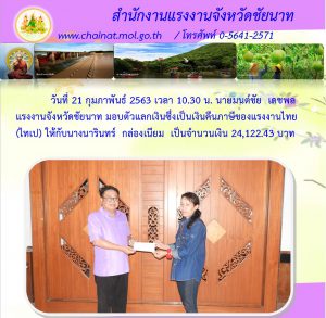 แรงงานจังหวัดชัยนาท มอบตัวแลกเงิน(เงินคืนภาษีของแรงงานไทย) ไทเป