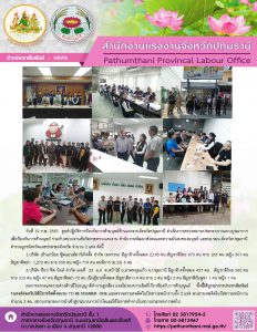 สำนักงานแรงงานจังหวัดปทุมธานี ตรวจสถานประกอบการแบบบูรณาการ เพื่อป้องกันปัญหารการค้ามนุษย์ด้านแรงงาน