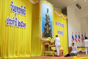 พิธีวางพานพุ่มถวายราชสักการะ เนื่องในวันยุทธหัสถีสมเด็จพระนเรศวรมหาราช