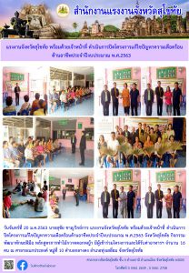 แรงงานจังหวัดสุโขทัย พร้อมด้วยเจ้าหน้าที่ ดำเนินการปิดโครงการแก้ไขปัญหาความเดือดร้อนด้านอาชีพประจำปีงบประมาณ พ.ศ.2563