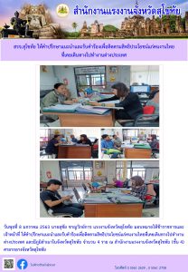 สรจ.สุโขทัย ให้คำปรึกษาแนะนำและรับคำร้องเพื่อติดตามสิทธิประโยชน์แก่คนงานไทยที่เคยเดินทางไปทำงานต่างประเทศ