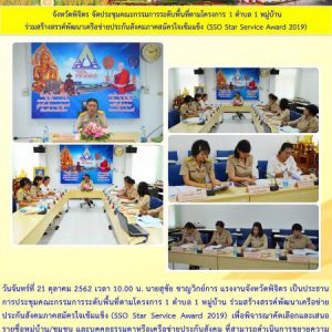 สำนักงานแรงงานจังหวัดพิจิตร จัดประชุมคณะกรรมการระดับพื้นที่ตามโครงการ 1 ตำบล 1 หมู่บ้านร่วมสร้างสรรค์พัฒนาเครือข่ายประกันสังคมภาคสมัครใจเข้มแข็ง (SSO Star Service Award 2019)
