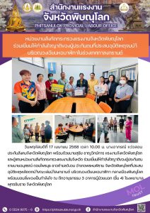 หน่วยงานสังกัดกระทรวงเเรงงานจังหวัดพิษณุโลก ร่วมเยี่ยมให้กำลังใจญาติของผู้ประกันตนที่ประสบอุบัติเหตุจมนำ้ บริเวณวงเวียนหอนาฬิกาในช่วงเทศกาลงกรานต์