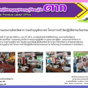 สำนักงานแรงงานจังหวัดตาก ร่วมทำบุญตักบาตร โครงการเข้าวัดปฏิบัติธรรมวันธรรมสวนะ