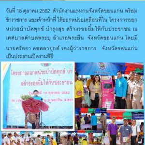สรจ.ขอนแก่น ร่วมออกหน่วยเคลื่อนที่ให้บริการด้านแรงงานตามโครงการหน่วยบำบัดทุกข์บำรุงสุข สร้างรอยยิ้มให้กับประชาชน และหน่วยแพทย์เคลื่อนที่ พอ.สว.