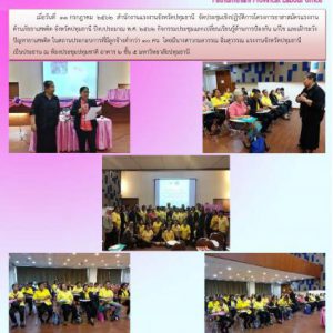 สำนักงานแรงงานจังหวัดปทุมธานี จัดประชุมเชิงปฏิบัติการโครงการอาสาสมัครแรงงานต้านภัยยาเสพติด จังหวัดปทุมธานี ปีงบประมาณ พ.ศ. 2562
