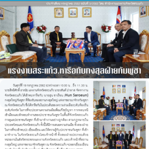 นายสิทธิศักดิ์ ธารนัย แรงงานจังหวัดสระแก้ว นายวสันต์ ปาลาส จัดหางานจังหวัดสระแก้ว ได้เข้าพบหารือกับ นายฮุน ซาเรือน (Hun Saroeun) กงสุลใหญ่กัมพูชา ที่ห้องรับรองสถานกงสุลใหญ่ แห่งราช