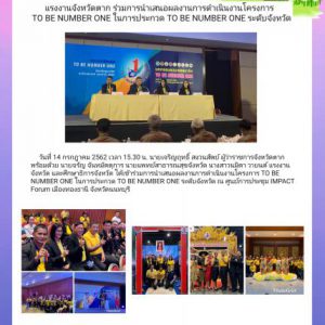 แรงงานจังหวัดหนองคายเข้าร่วมกิจกรรมประกวดจังหวัด/ชมรมTO BE NUMBER ONE ระดับประเทศ ในงานมหกรรมรวมพลสมาชิก TO BE NUMBER ONE ประจำปี 2562 ณ Hall 4 และห้อง แกรนด์ ไดมอนด์ บอลรูม อาคารอิมแพ็ค ฟอรั่มเมืองทองธานี จังหวัดนนทบุรี