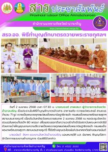 แรงงานจังหวัดพระนครศรีอยุธยา เข้าร่วมพิธีสมโภชพระพุทธโตรรัตนนายก ครบ 701 ปี พิธีเจริญพระพุทธมนต์เฉลิมพระเกียรติ สมเด็จพระกนิษฐาธิราชเจ้า กรมสมเด็จพระเทพรัตนราชสุดาฯ สยามบรมราชกุมารี และพิธีทำบุญอุทิศ ถวายอดีตเจ้าอาวาสและผู้มีอุปการคุณต่อวัด