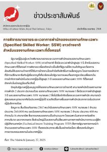 การพิจารณาขยายระยะเวลาการพำนักของแรงงานทักษะเฉพาะ (Specified Skilled Worker: SSW) ชาวต่างชาติ สำหรับแรงงานทักษะเฉพาะที่ตั้งครรภ์