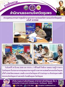 ว่าที่ร้อยตรี กิตติภพ รอดดอน รองผู้ว่าราชการจังหวัดชุมพร เป็นประธานการประชุมคณะกรรมการศูนย์อำนวยการความปลอดภัยทางถนนจังหวัดชุมพร ครั้งที่ 3/2568 โดยนายทเนตร นาคแย้ม แรงงานจังหวัดชุมพร เข้าร่วมประชุมฯ ณ ห้องประชุมเกาะเสม็ด
