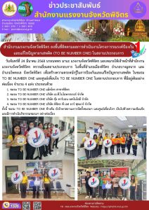 สำนักงานแรงงานจังหวัดพิจิตร ลงพื้นที่ติดตามผลการดำเนินงานโครงการรณรงค์ป้องกันและแก้ไขปัญหายาเสพติด (TO BE NUMBER ONE) ในสถานประกอบการ