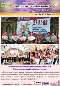 แรงงานจังหวัดพังงา ร่วมงานแถลงกิจกรรมการแข่งขันไตรกีฬานานาชาติจังหวัดพังงา 2525 (Phang-nga International Triathlon Sport Tourism)