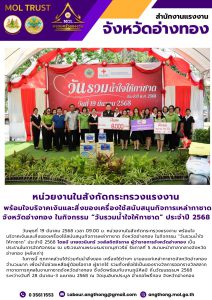 หน่วยงานในสังกัดกระทรวงแรงงาน พร้อมใจบริจาคเงินและสิ่งของเครื่องใช้สนับสนุนกิจการเหล่ากาชาด จังหวัดอ่างทอง ในกิจกรรม “วันรวมน้ำใจให้กาชาด” ประจำปี 2568