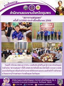 แรงงานจังหวัดชุมพร พร้อมหัวหน้าส่วนราชการสังกัดกระทรวงแรงงาน และเจ้าหน้าที่ ร่วมกิจกรรม “สภากาแฟชุมพร” ครั้งที่ 3/2568 ประจำเดือนมีนาคม 2568