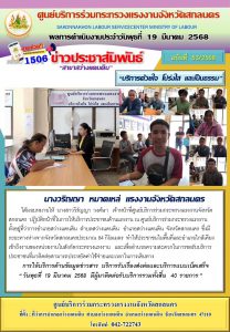 ข่าวประชาสัมพันธ์ ศูนย์บริการร่วมกระทรวงแรงงานจังหวัดสกลนคร สาขาสว่างแดนดิน ประจำวันที่ 19 มีนาคม 2568
