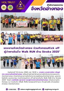 แรงงานจังหวัดอ่างทอง ร่วมกิจกรรมKick off ผู้ว่าพาเดินวิ่ง Walk RUN ต้าน Stroke 2025″