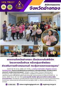 แรงงานจังหวัดอ่างทอง เป็นประธานในพิธีเปิด โครงการหนึ่งตำบล หนึ่งกลุ่มอาชีพอิสระ ส่งเสริมการสร้างคอนเทนต์ กระตุ้นการตลาดของชุมชน”
