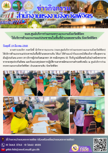 บัณฑิตแรงงานจังหวัดพิจิตร ลงพื้นที่นำบริการข่าวสารด้านแรงงานประชาสัมพันธ์ให้แก่ประชาชนในพื้นที่