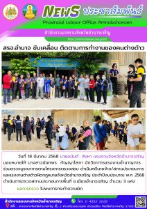 กรง.อำนาจเจริญ ขับเคลื่อน ติดตามการทำงานของคนต่างด้าวในจังหวัด