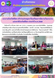 แรงงานจังหวัดพิจิตร เข้าร่วมประชุมหารือเตรียมการจัดงานวันแรงงานแห่งชาติจังหวัดพิจิตร ประจำปี พ.ศ.2568