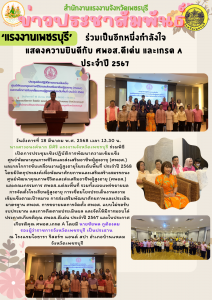 “แรงงานเพชรบุรี” ร่วมเป็นอีกหนึ่งกำลังใจ แสดงความยินดีกับ ศพอส.ดีเด่นและเกรด A ประจำปี 2567