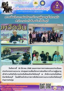 คณะกรรมการตรวจสอบและประเมินผลประจำกระทรวงแรงงาน ประชุมตรวจเยี่ยมโครงการส่งเสริมการจ้างงานผู้สูงอายุเข้าทำงานกับสำนักงานประกันสังคมจังหวัดจันทบุรี
