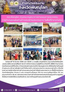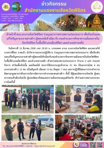 เจ้าหน้าที่ สนง.แรงงานจังหวัดพิจิตร ร่วมบูรณาการตรวจสถานประกอบการ เพื่อป้องกันและแก้ไขปัญหาแรงงานต่างด้าว ผู้หลบหนีเข้าเมือง กับ กองอำนวยการรักษาความมั่นคงภายในจังหวัดพิจิตร ในพื้นที่อำเภอเมืองพิจิตร และอำเภอสากเหล็ก